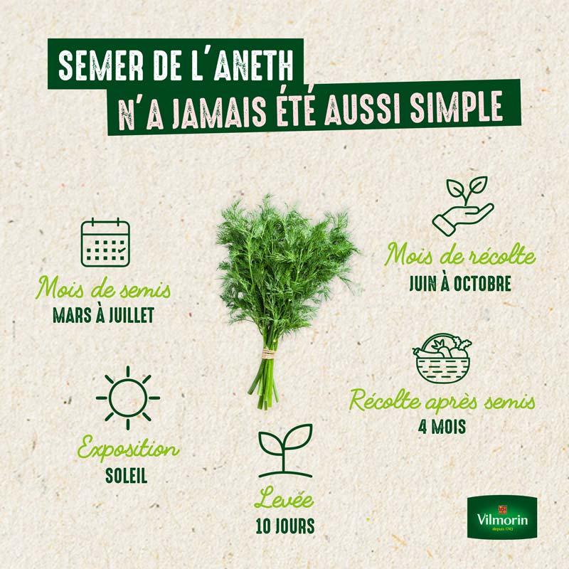 Déguster les feuilles, en sauce ou nature , les graines comme aromate. La douceur de l'aneth se marie parfaitement avec le saumon cuit ou mariné. Pour récolter les graines, couper les fleurs en août et les faire sécher sur du papier.
