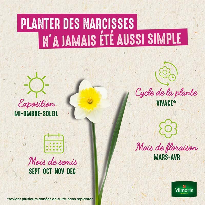 Très facile à cultiver, le narcisse, rustique et vivace, est une fleur à bulbe qui se plait dans la plupart des jardins. Il s'adapte facilement aux températures de nos régions et enchantera votre jardin année après année.